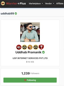 I am Uddhab Pramanik, a seasoned product launcher with over 10 years of experience on platforms like WarriorPlus and JVZoo. I've successfully launched hundreds of products and consistently rank in the top 1% on these platforms.